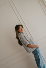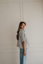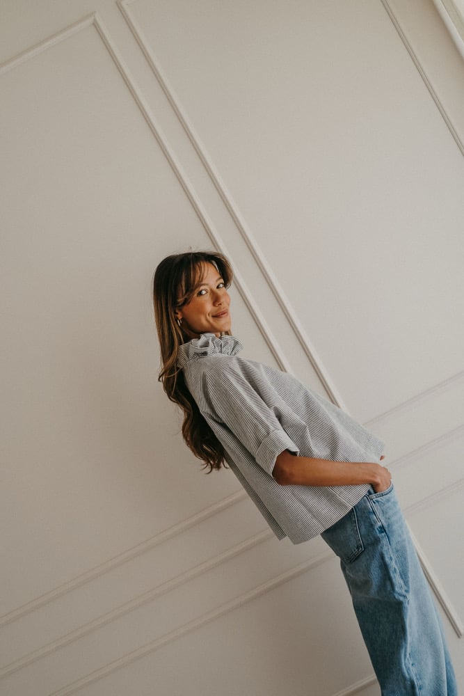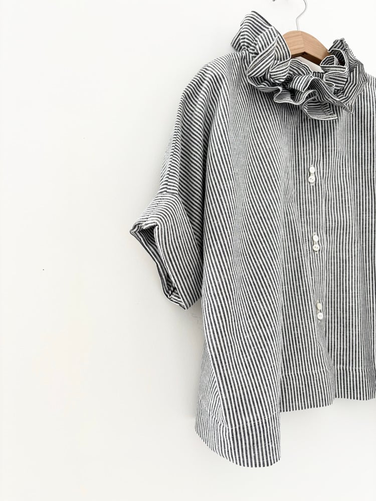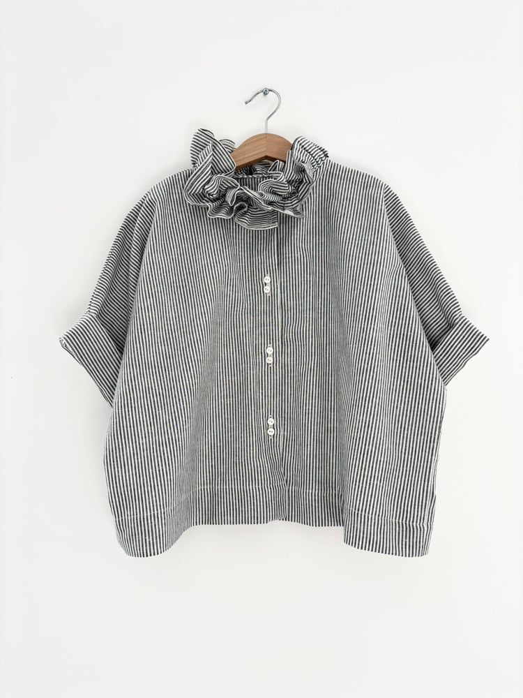 Taille grand mais coupe loose voulu, la différence va surtout un peu jouer sur la longueur, d’une taille à l’autre.