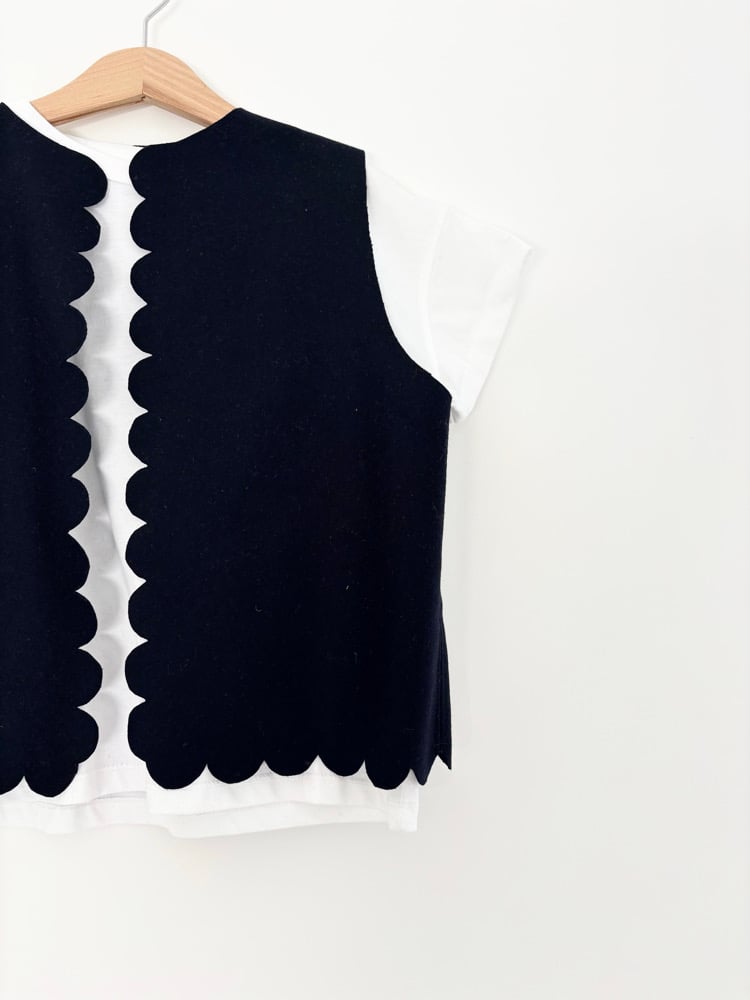 Finitions festonnées devant et en bas de gilet.