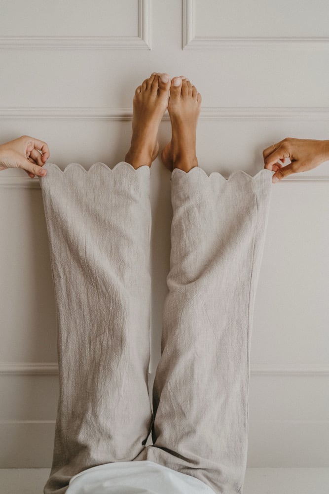 Finition festonnée en bas de jambes.